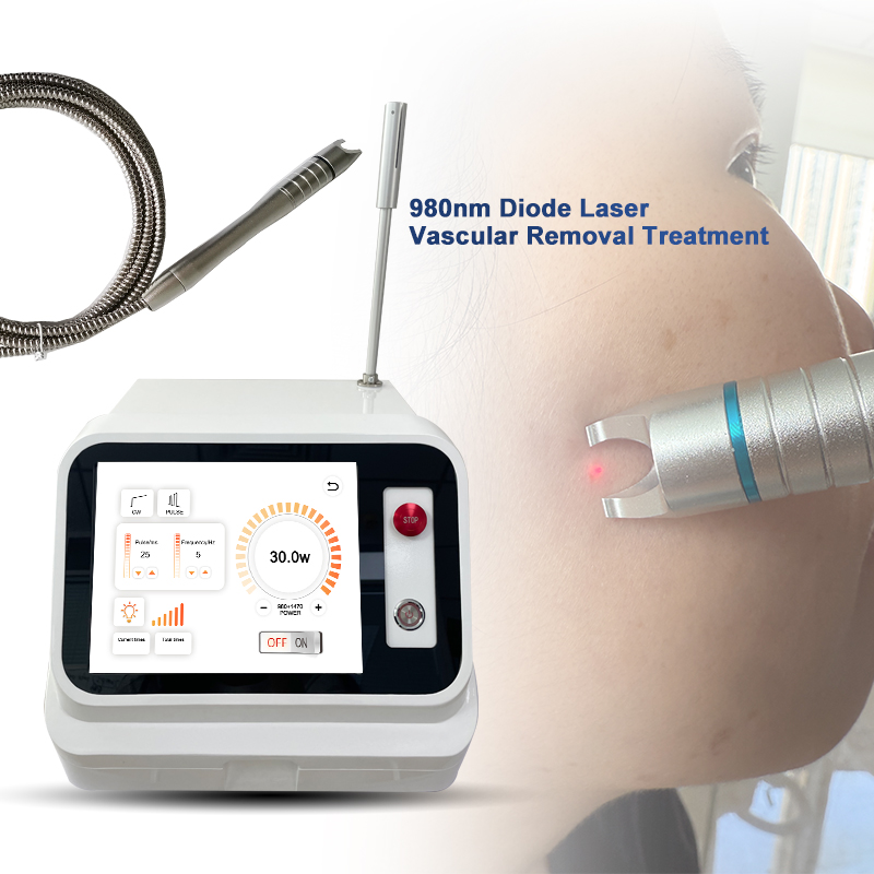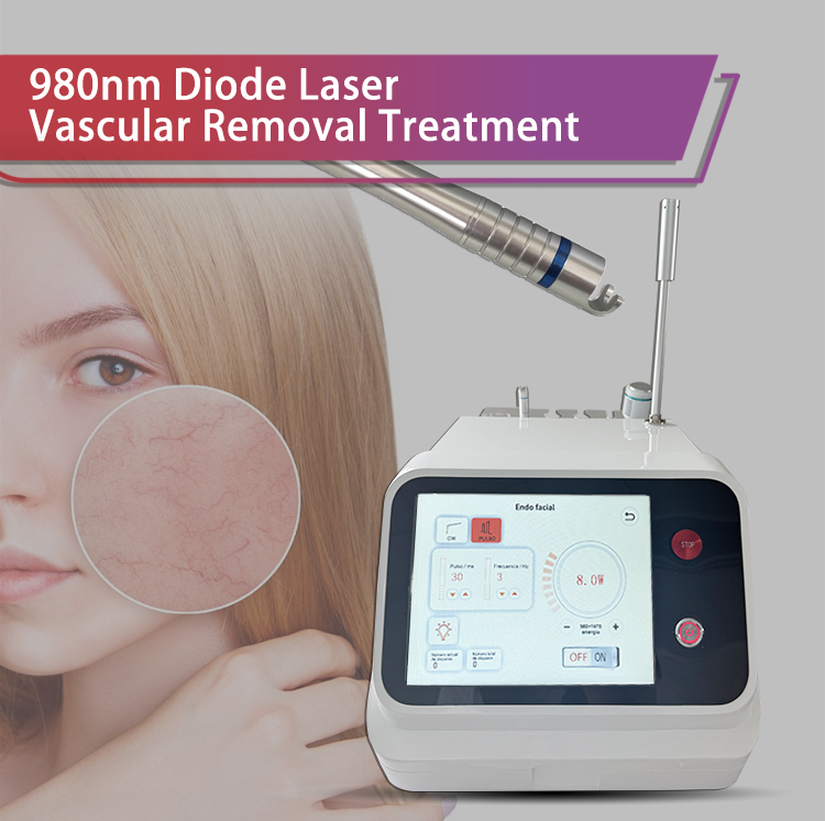 1.980nm laser is the optimum absorption spectrum of Porphyrin vascular cells. Vascular cells absorb the-highenergy laser of 980nm wavelength, solidification occurs, and finally dissipated.