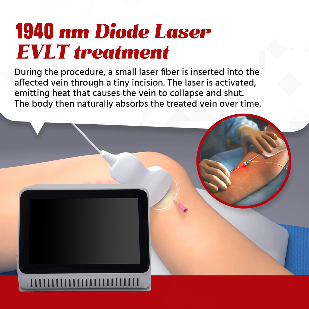The 1940nm laser,through its revolutionary “water-specific absorption”mechanism,enables the direct and precise closure of varicose veins.It represents an advanced treatment option that is minimally invasive,safe,effective,and delivers additional aesthetic benefits.